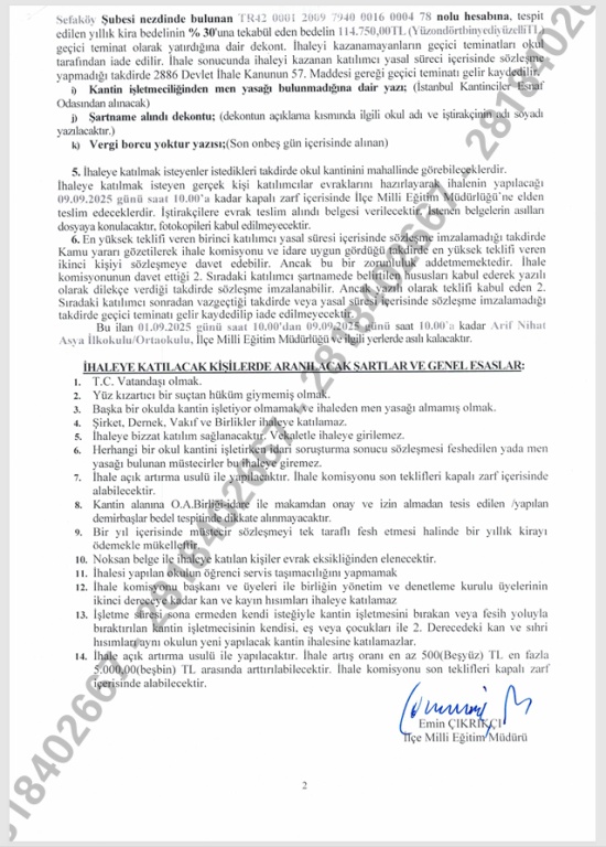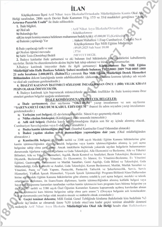 Kantin İhale İlanı